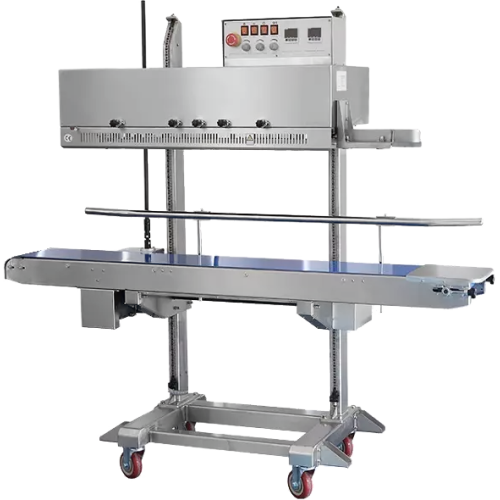 Μπορεί επίσης να ενσωματωθεί στη γραμμή παραγωγής. Το μηχάνημα λειτουργεί με κωδικοποιητή στερεάς μελάνης για την εκτύπωση των έγχρωμων ετικετών κατά τη σφράγιση.
