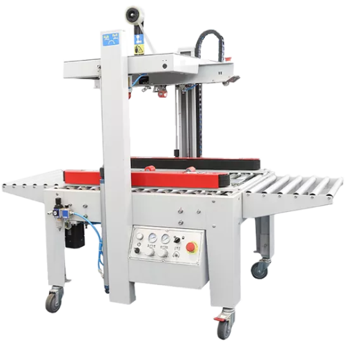 Το αυτόματο πνευματικό σφραγιστικό χαρτοκιβωτίων FXJ-5050QS με νέα λειτουργία κλειδώματος εφαρμόζεται ειδικά για συνεχή σφράγιση χαρτοκιβωτίων σε διαφορετικά μεγέθη, το οποίο χρησιμοποιείται στους τομείς των οικιακών ηλεκτρικών συσκευών, των τροφίμων, των γενικών εμπορευμάτων, της ιατρικής και της χημικής βιομηχανίας.