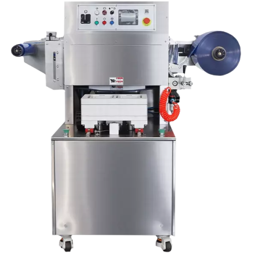 Η μηχανή συσκευασίας έκχυσης αερίου κενού δίσκου αντικαθιστά τον αέρα στη σακούλα με αέριο προστατευτικού μείγματος. αναστέλλουν την ανάπτυξη των περισσότερων μικροοργανισμών που μπορεί να κάνουν τα τρόφιμα επιρρεπή σε αλλοίωση. Μειώνει την αναπνοή της ενεργής τροφής (όπως τα φρούτα) ώστε να παρατείνει τον χρόνο φρεσκάδας.