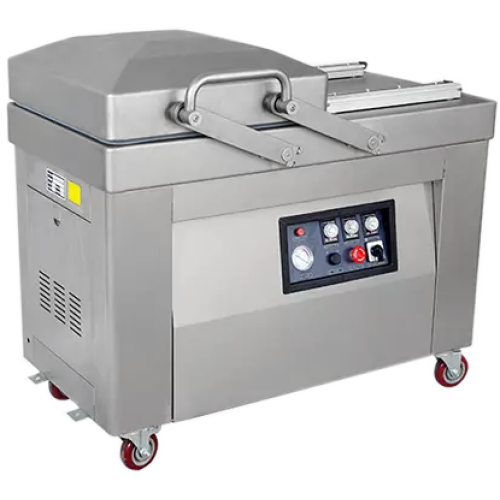 Μηχανήματα συσκευασίς κενού, εξοπλισμένα με δύο θαλάμους. Ενώ τα προϊόντα συσκευάζονται στον πρώτο θάλαμο, ο δεύτερος θάλαμος μπορεί να εκφορτωθεί και να φορτωθεί ξανά. Αυτό καθιστά τη διαδικασία συσκευασίας ιδιαίτερα αποτελεσματική. Οι μηχανές συσκευασίας κενού διπλού θαλάμου είναι εύκολες στη λειτουργία, τον καθαρισμό και το σέρβις. Προσφέρουν την υψηλότερη απόδοση με το μικρότερο αποτύπωμα και επίσης παρέχουν εντυπωσιακή απόδοση σε όλη τη διάρκεια ζωής του μηχανήματος.