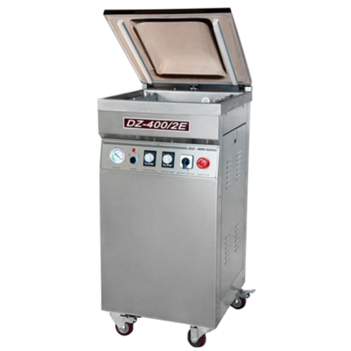 Ο θάλαμος κενού είναι εξ ολοκλήρου από ανοξείδωτο χάλυβα για μέγιστη αντοχή και καθαριότητα. Το DZ-400/2E είναι μια μεσαίου μεγέθους βιομηχανικής ποιότητας αυτόνομη μηχανή συσκευασίας κενού. Είναι εξοπλισμένο με μια περιστροφική αντλία κενού γεμάτη λάδι βαρέως τύπου, ένα σύστημα σφράγισης με ευρεία σφράγιση διπλής ράβδου, αναλογικά χειριστήρια και τροχούς για ευκολία στη μετακίνηση. Το μέγεθος του θαλάμου του επιτρέπει τη χρήση μιας μεγάλης ποικιλίας εφαρμογών, καθώς μπορεί να χωρέσει προϊόντα μεγαλύτερης αναλογίας.